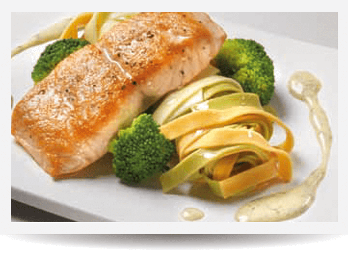 Passer la pâte à la passoire à spätzlis dans de l’eau bouillante salée et cuire jusqu’à ce que les spätzlis remontent à la surface. Ecumer et retirer les spätzlis, bien égoutter, les arroser de DELISSIO Gold 10% et réserver.